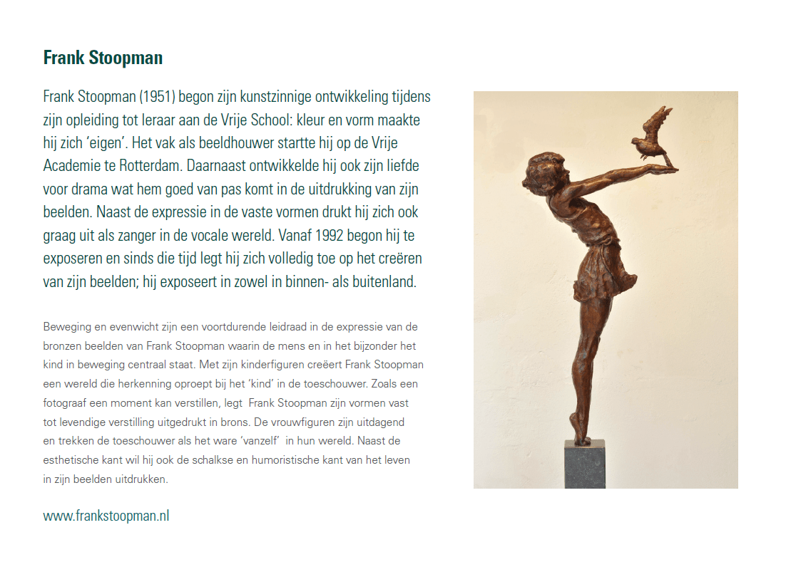 ABN AMRO MeesPierson Rotterdam and Frank Stoopman and Evert den Hartog will make a donation to the Eye Care Foundation. ABN AMRO MeesPierson proudly presents an exhibition by both sculptors on Friday September 30 and Saturday October 1 2016. They will donate a portion of the proceeds to the Eye Care Foundation. ABN AMRO MeesPierson has made its premises available for this special exhibition.
